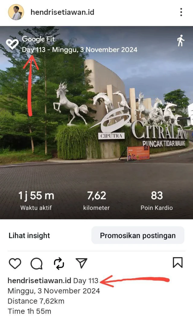 - Tapi jangan remehkan hasilnya → justru jalan kaki konsisten 113 hari, jadi turning point perjalanan kami.