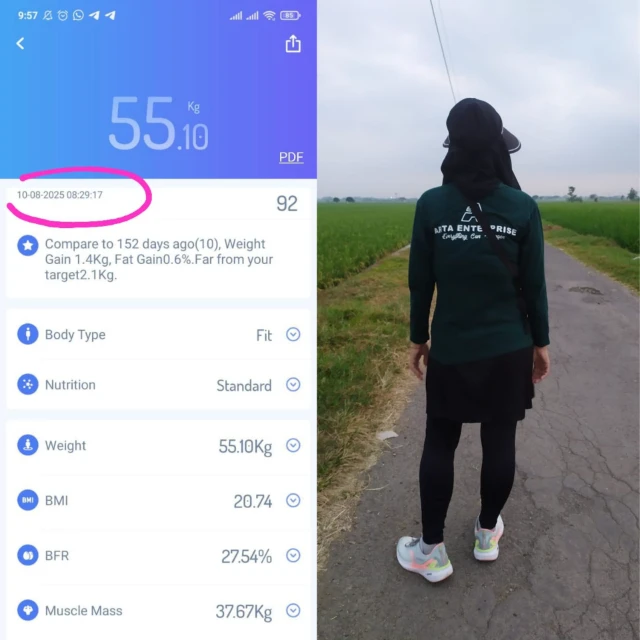 Per 10 Agustus 2025, BB istri saya ada di 55,1 kg.